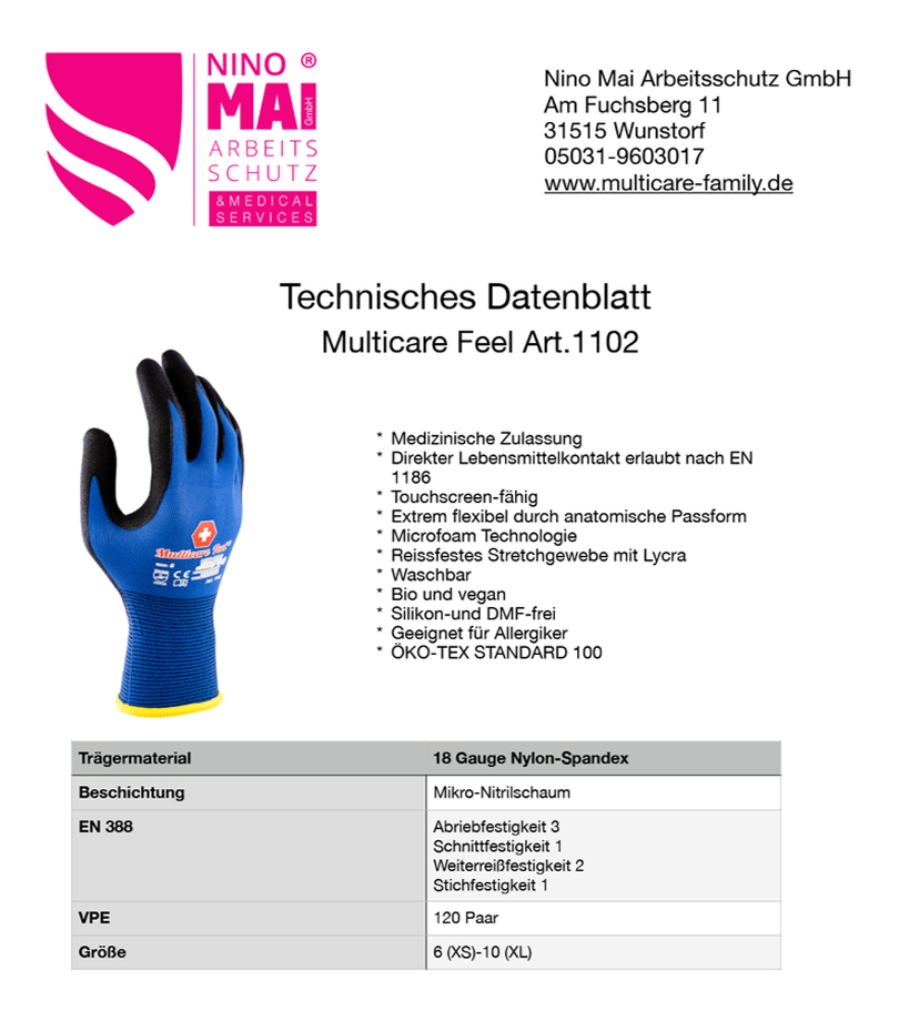 Die Multicare Feel Arbeitshandschuhe wurden speziell für Arbeiten entwickelt, bei denen Feingefühl, Kontrolle und Präzision im Vordergrund stehen. Sie ermöglichen ein nahezu ungehindertes Tastempfinden und bieten gleichzeitig zuverlässigen Schutz im Arbeitsalltag.
